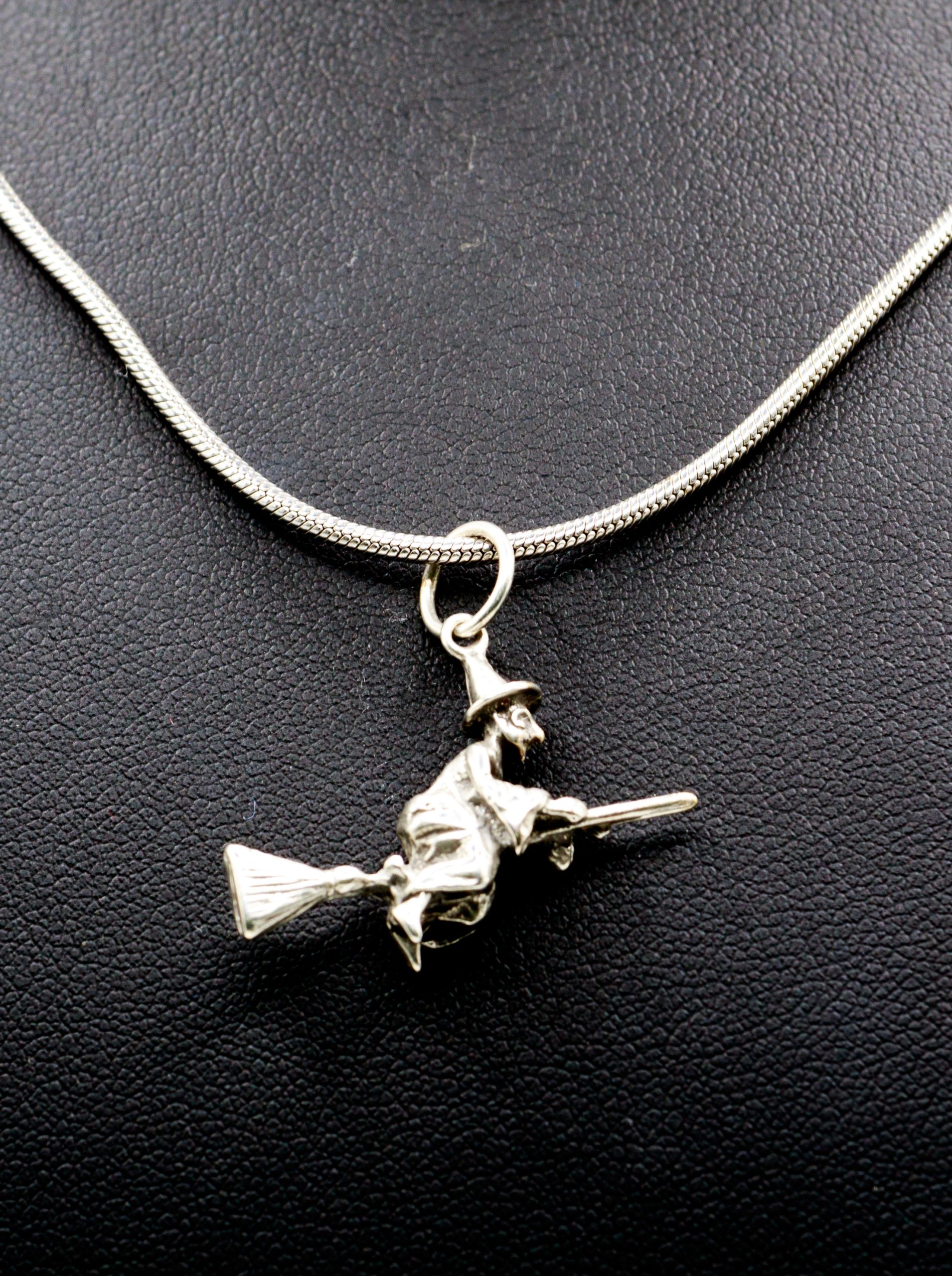 Dije/Colgante de plata con forma de bruja. Peso 2.80 gr. Accede a este enlace para realizar tu compra