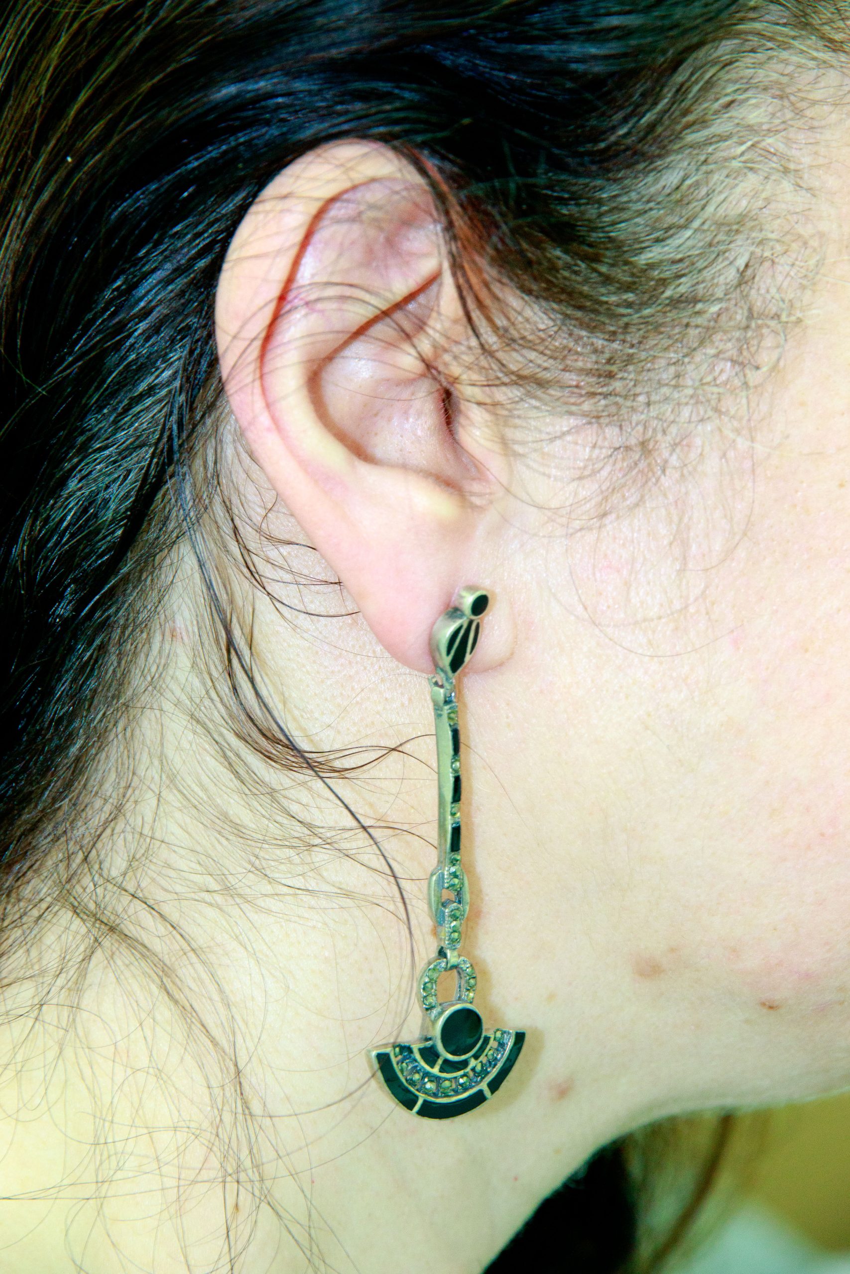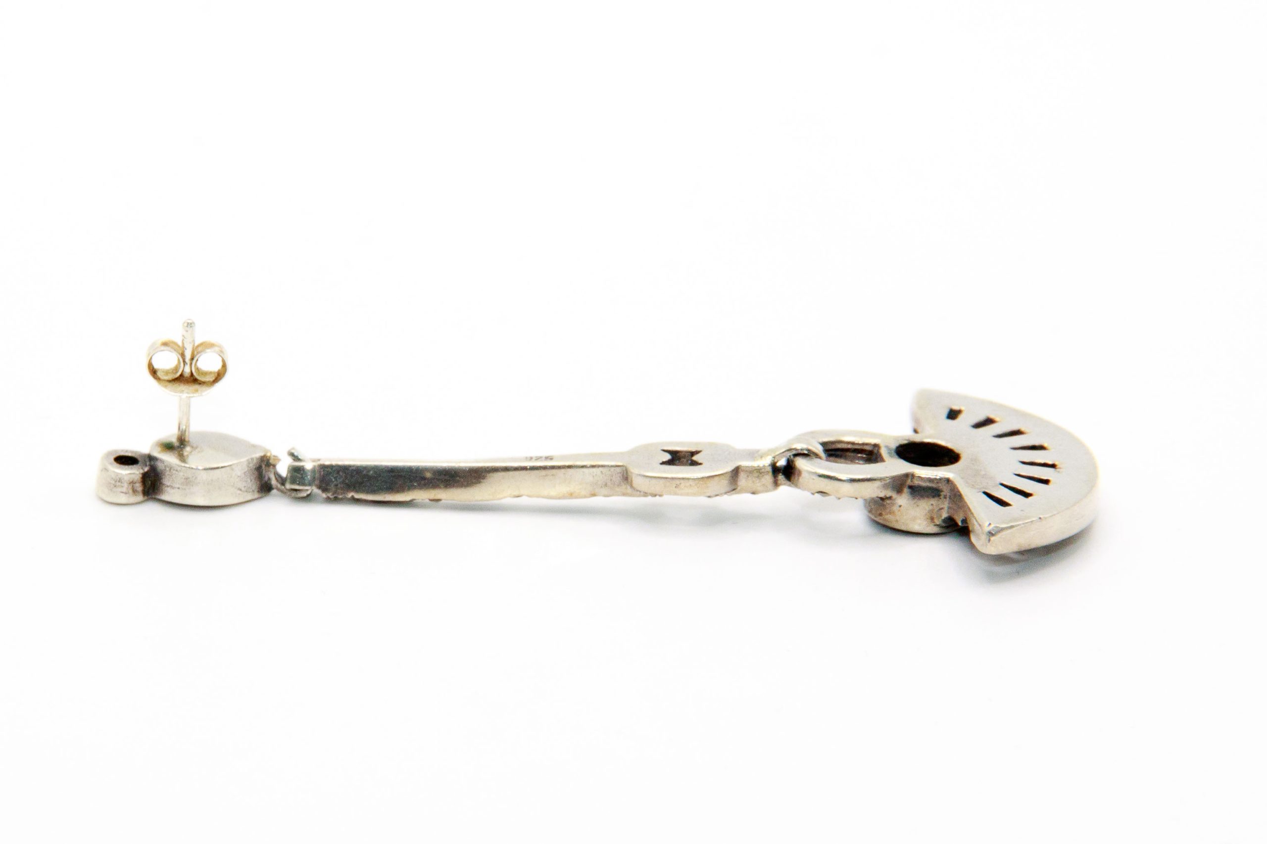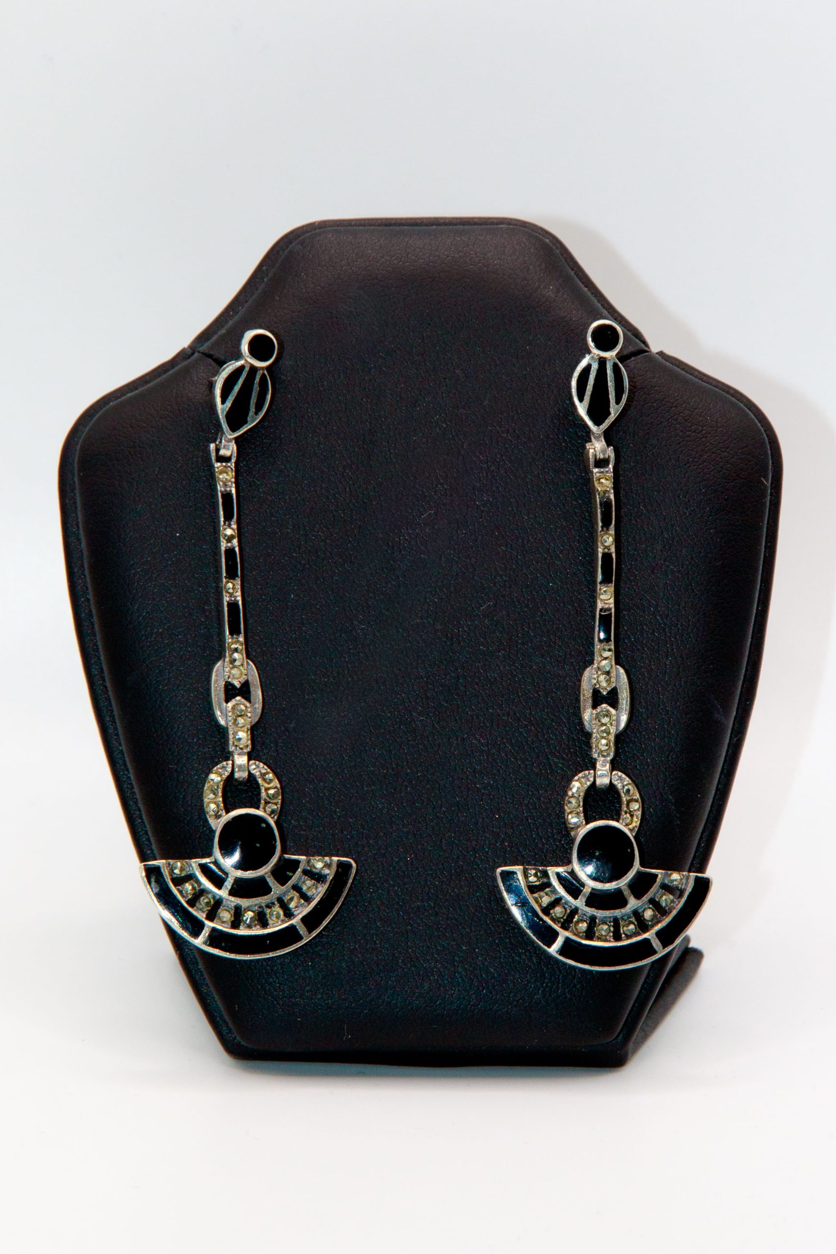 Pendientes largos en plata de ley con decoración de pedrería negra y circonita blanca. Peso 16,4gr. Accede a este enlace para realizar tu compra